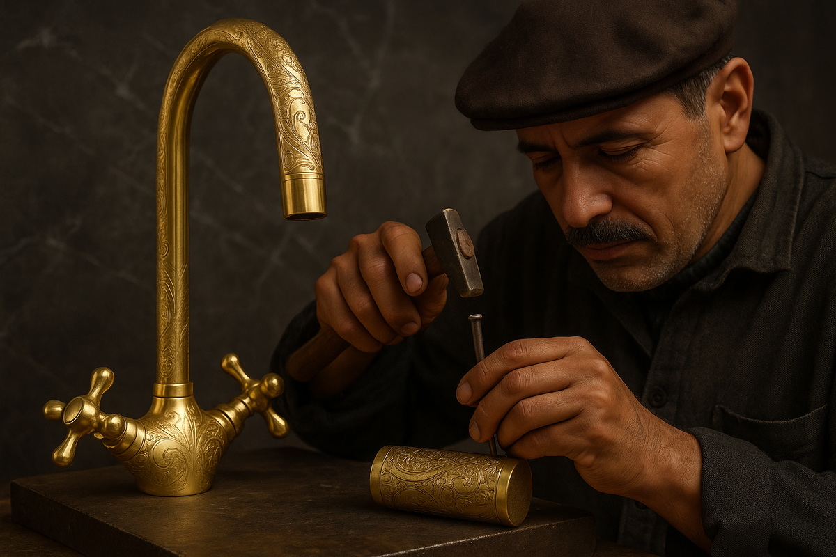 Every faucet, sink, and bracket is shaped, soldered, and finished by hand, using solid brass and copper.